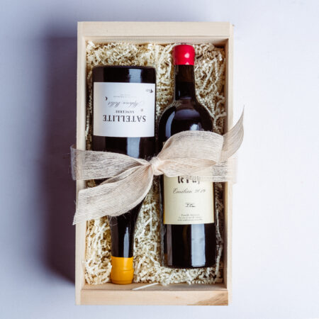 A gift for the serious wine lover, we’ve picked these two bottles from our extensive cellar. These are hard to find, special cuvées from off the beaten path wrapped in a black/kraft box with crinkle paper and Esters’ ribbon.