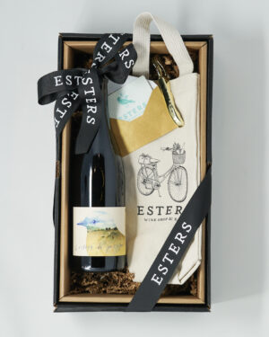 The perfect gift for the Esters Super Fans! Includes our branded, single bottle wine tote, a wine key, $25 gift card, and (wine club) exclusive wine, of course! Also includes a note about the wine: all the technical details and a story about why it’s special. All this wrapped up in a black/kraft box, with crinkle paper and Esters’ ribbon.